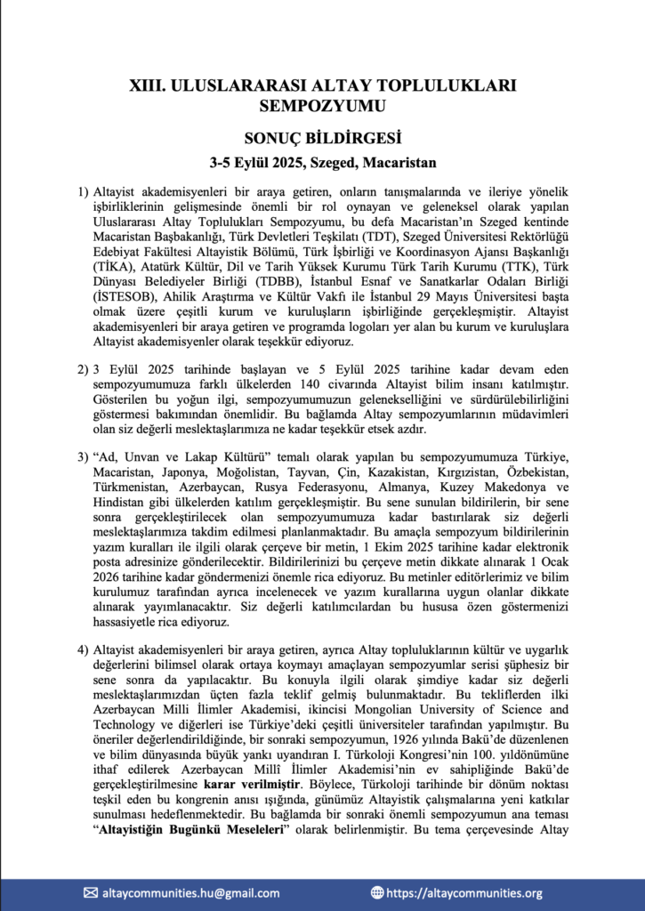 Around 140 Altaic scholars from 12 countries—including Hungary, the host nation, as well as Türkiye, Azerbaijan, Kazakhstan, Kyrgyzstan, Uzbekistan, Turkmenistan, Mongolia, the Russian Federation, Germany, Japan, and China—participated in the event and presented their papers.